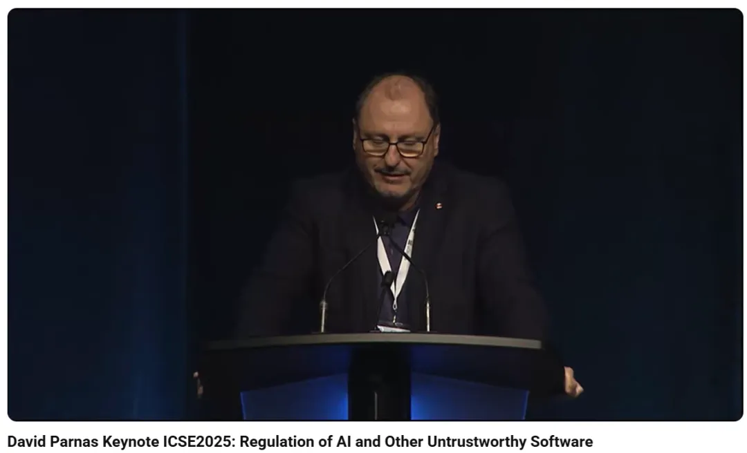 四十年之后的2025年,Parnas还在ICSE025上做了“Regulation of AI and Other Untrustworthy Software”的演讲。
