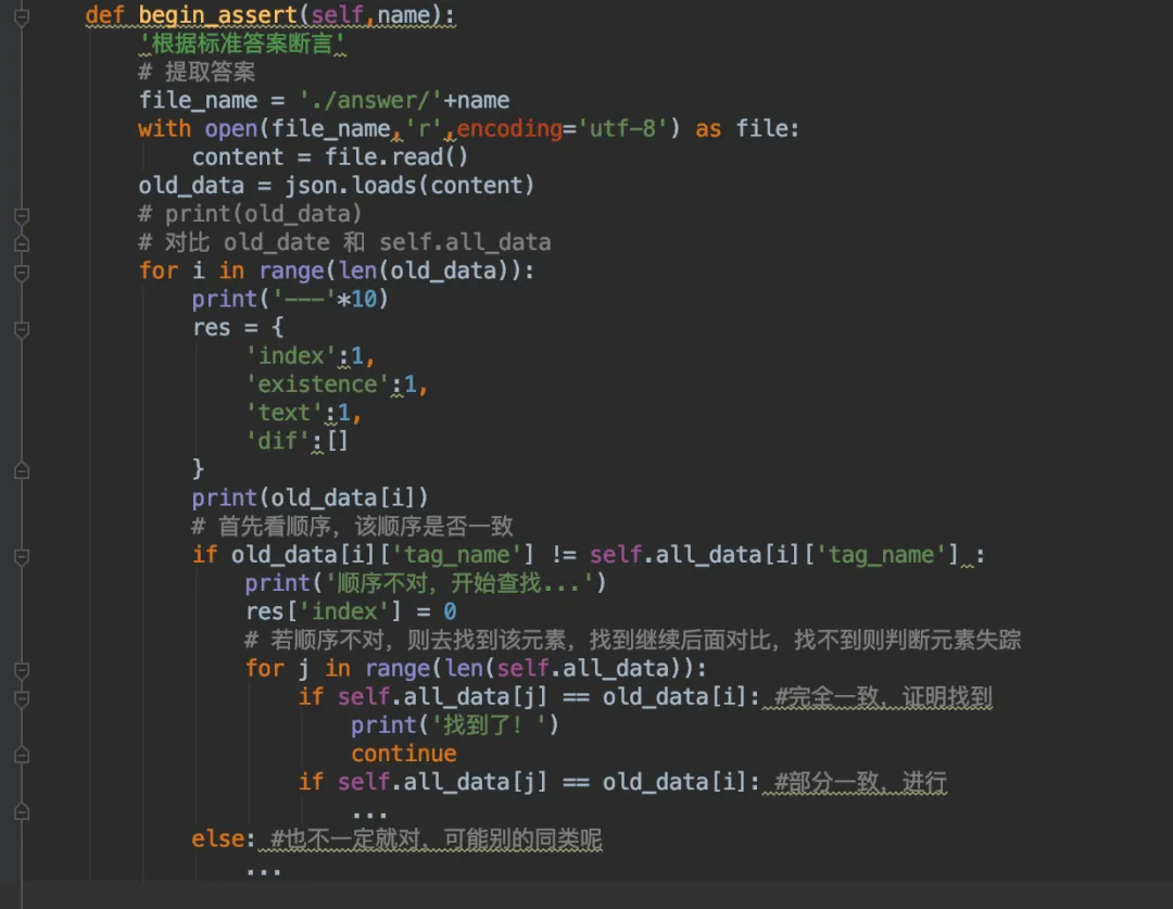根据传入要断言的页面名称去拿到标准答案,拿不到则提示。 拿到后开始进行比对,整理出所有不同的tag和不同的内容。 交给AI模块,让AI去做最终判断,是否还是同一个页面。