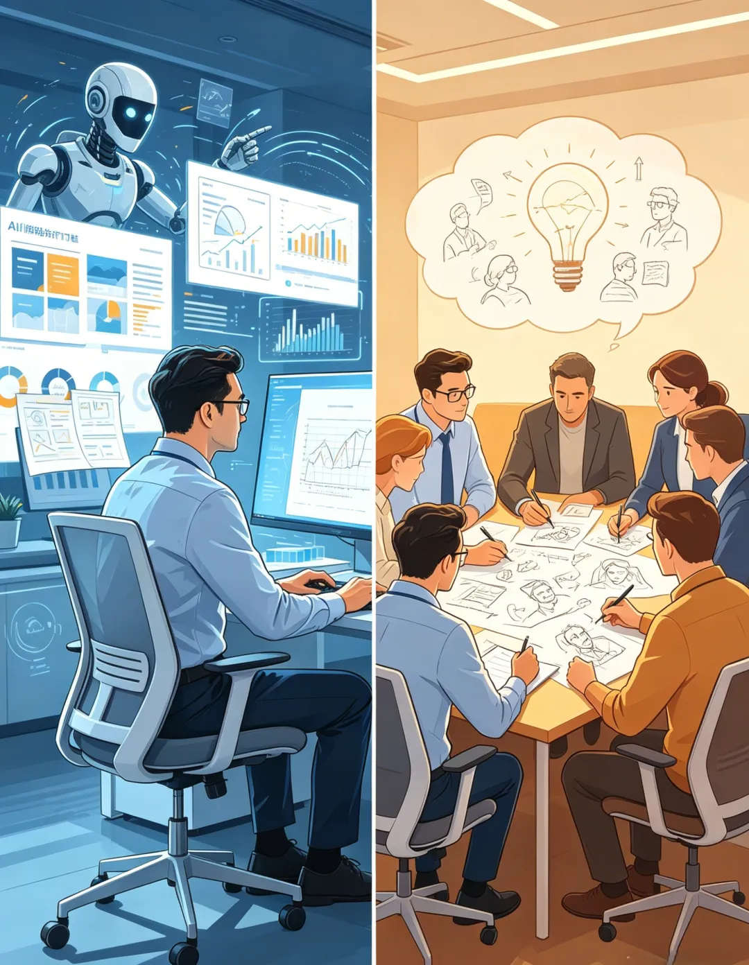 · 写报告· 做方案· 整理信息 | · 洞察人性· 整合复杂信息· 承担决策责任 |