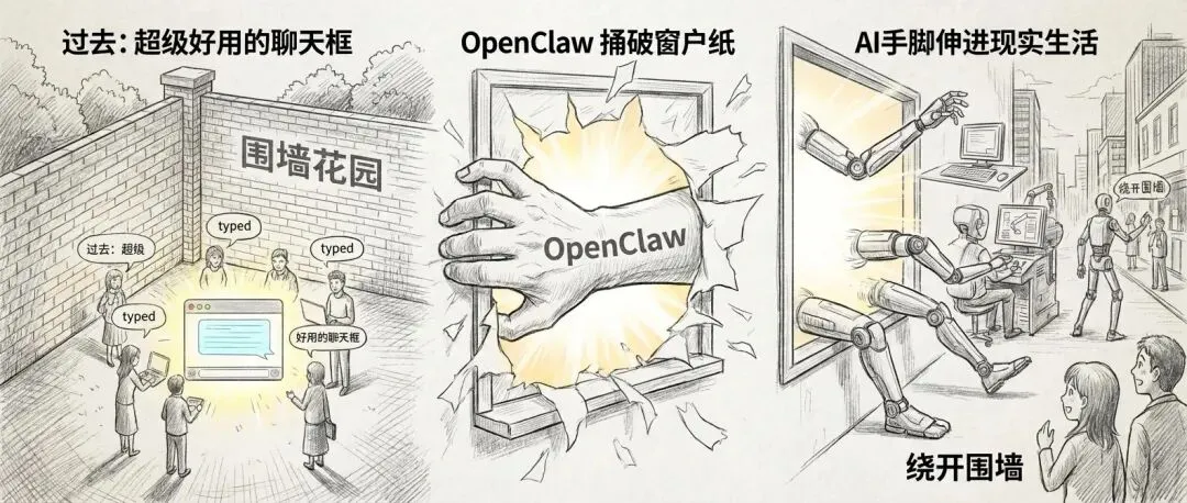 如果说过去一年我们对 AI 的认知是“一个超级好用的聊天框”,那 OpenClaw 的出现,标志着这层窗户纸被彻底捅破了。大家不再满足于在大模型的官方网页里打字,而是开始尝试绕开这些“围墙花园”,把 AI 的手脚伸进现实生活。