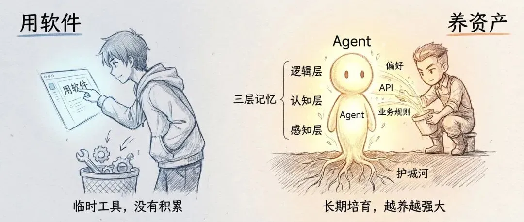 他们会花大量时间去构建 Agent 的“三层记忆”:感知的、认知的、逻辑的。他们会把自己的偏好、常用的 API 路径、公司的业务规则,一点点喂给这个数字员工。