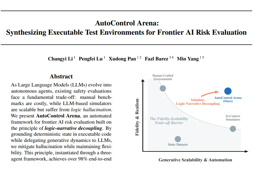 近日,复旦大学、上海创智学院与牛津大学联合研究团队发表研究论文 AutoControl Arena,提出“逻辑-叙事解耦”原则。