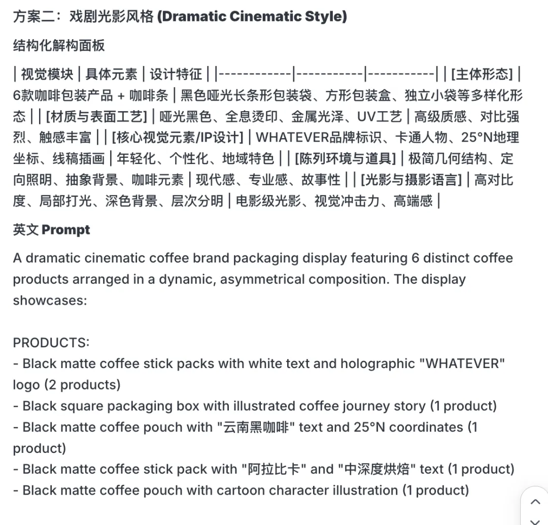 所以我现在更推荐的方式,是先给它一套“结构化的视觉生成框架”,要先把你说不清楚的视觉方向,弄清楚。