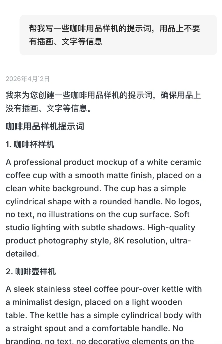 你跟 AI 说一句“帮我做一个高级一点的产品场景图”,它当然也能出图,但结果通常很飘。
