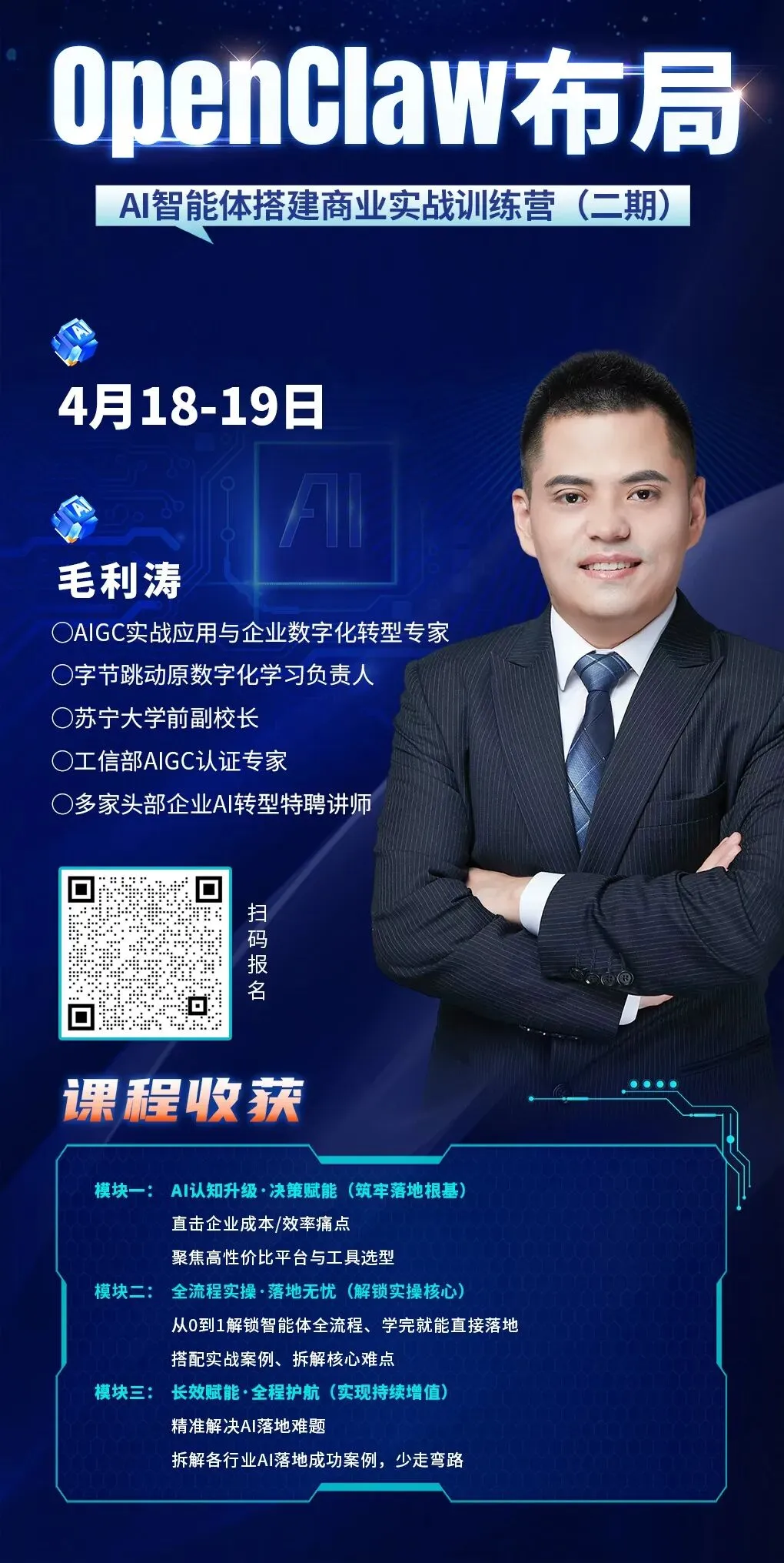 🔥 OpenClaw布局|AI智能体搭建商业实战训练营来啦!