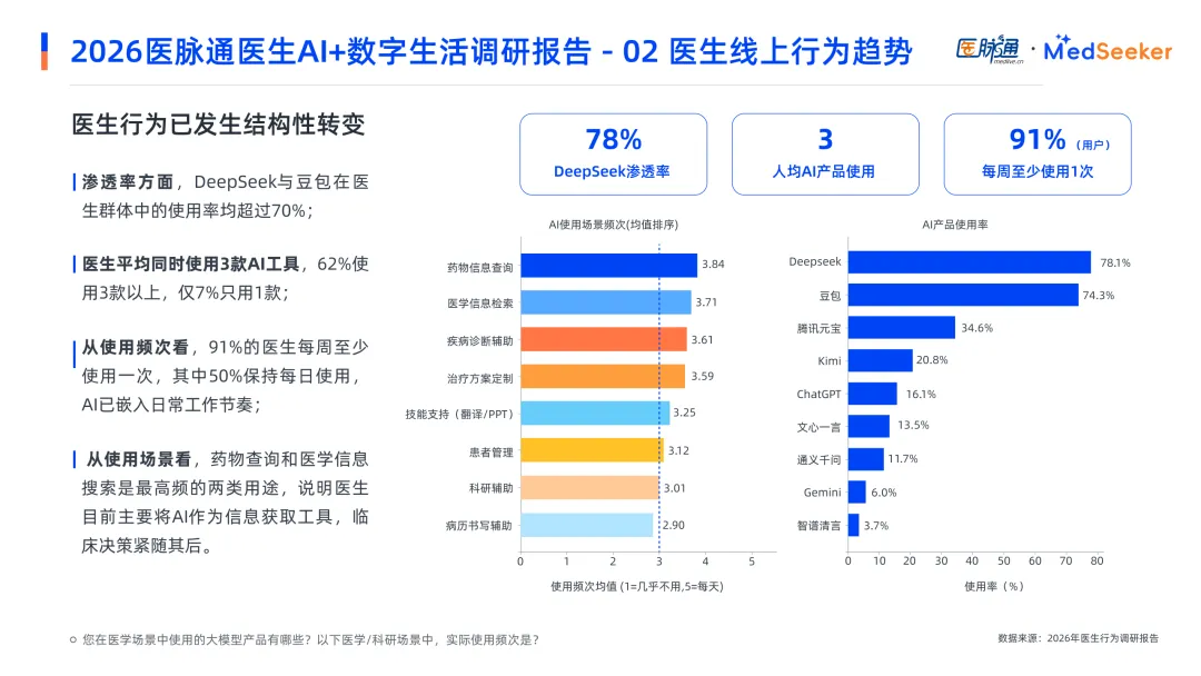 本文基于医脉通《2026医生AI+数字生活调研报告》整理解读,更多详细内容请阅读原文。