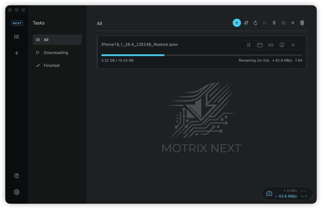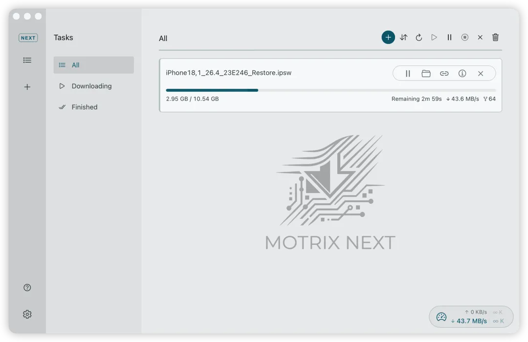 Motrix 是最好的开源下载管理器之一:界面简洁,基于Aria2,跨平台。之前推荐过这款软件👇
