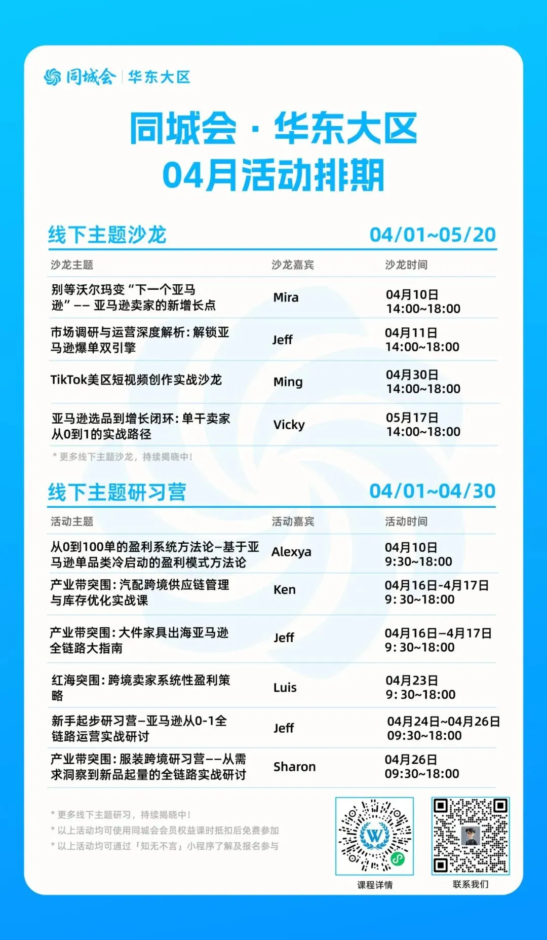 活动形式:研讨会、沙龙、线下大课、线上云课......