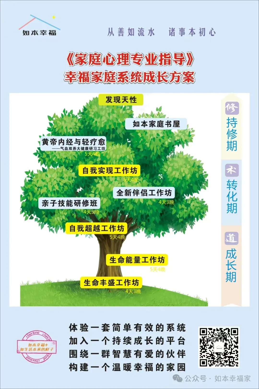 如本幸福致力于研究实践家庭教育全面成长方案,是家庭心理教育专业化、生活化、本土化的整理者、推广者及践行者。