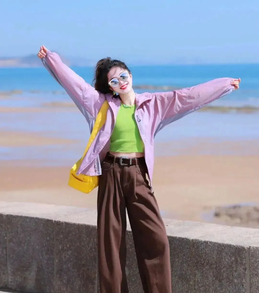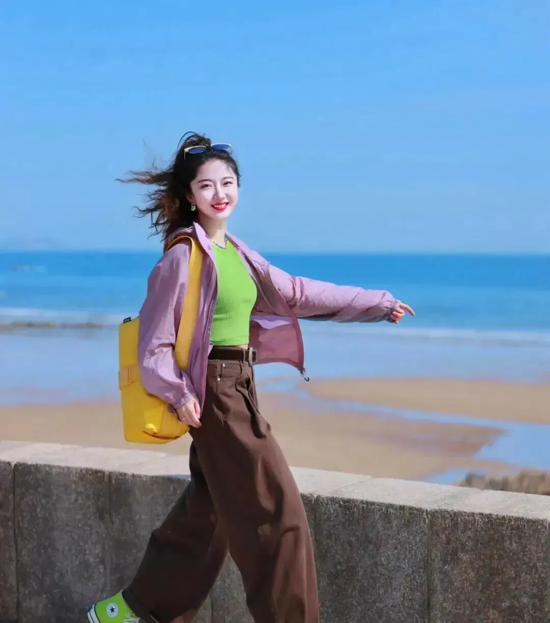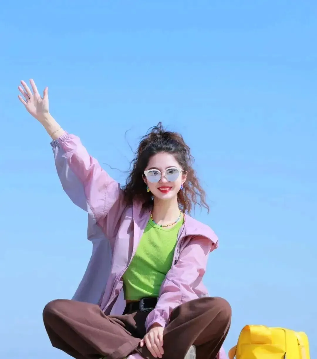 第五个动作 是张开手臂或者抬起一只手 你想想 当背景很空 比如海边 天空 树影街边 人如果缩着就很小气 手打开一点 画面会立刻舒展 但别绷直 记得肩膀放松 脖子拉长一点 脸带笑就行 那种轻轻挥手的感觉 比刻意摆拍有生命力多了