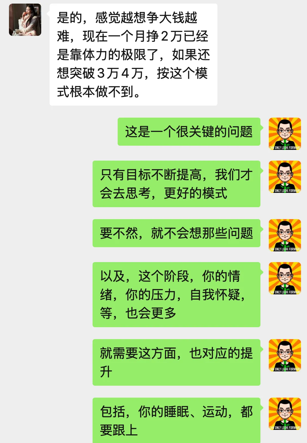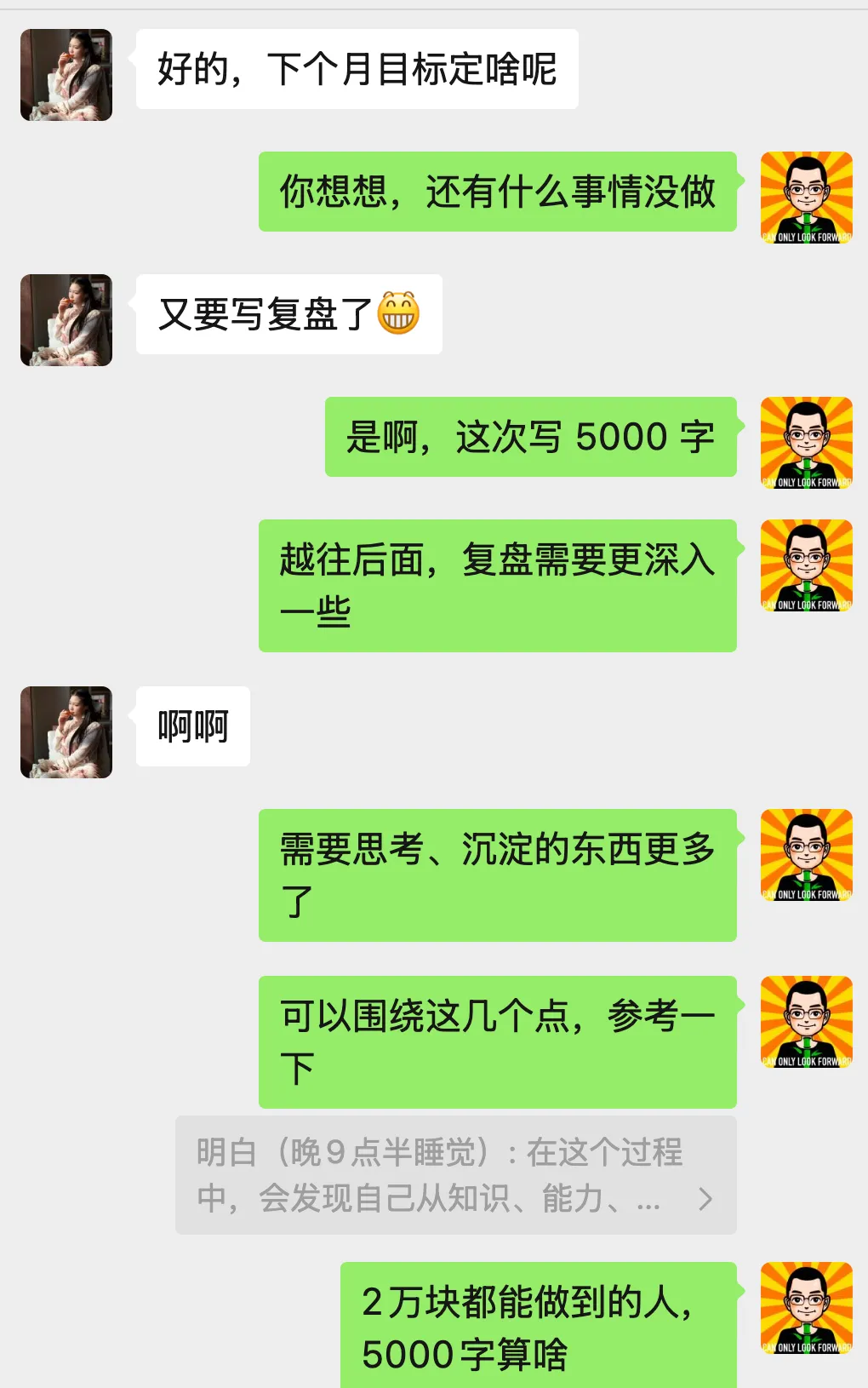 我在上一阶段的复盘里说:我相信这个月的 2 万,她一定能完成。