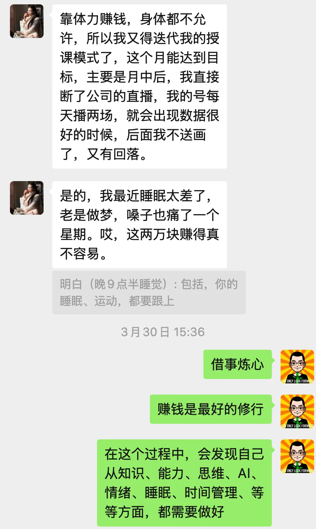 这件事给了我一个教训:身体才是最大的生产资料。熬夜、不运动、不注意饮食,直接体现在直播效果上。身体状态没管好,什么都是空谈。