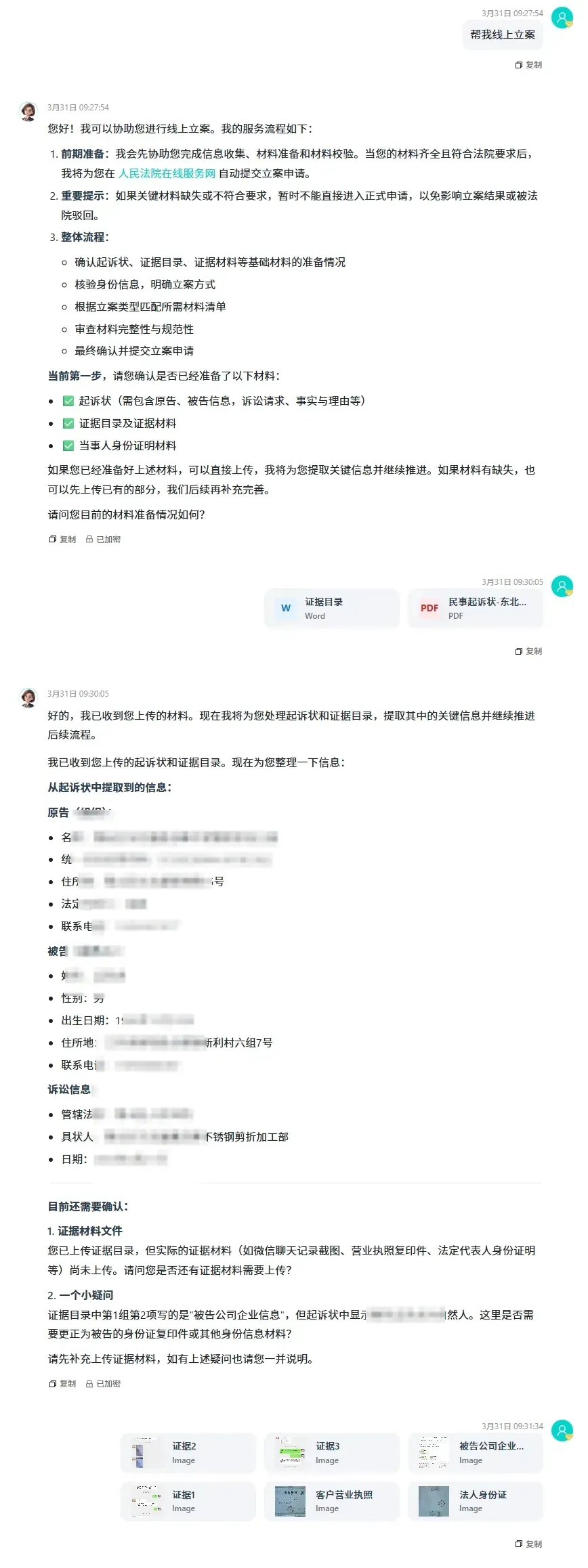 尽管法院已推出线上立案平台,但 “网上办案” 在实际操作中仍让普通人难以熟练掌握。选择案由、确定管辖法院、填写专业表单、准备格式严格的文书等法律专业环节,常常让用户耗费 4-6 小时,最终却因格式错误或信息不全被驳回。