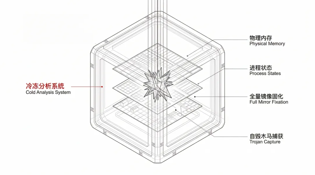 它的思路不是等攻击“结束”后再回头慢慢分析,而是在关键时点,尽可能快地把现场完整保留下来。包括物理内存、进程运行状态、线程、模块、注册表、磁盘文件系统以及启动方式等信息,都会被做全量镜像克隆和固化。