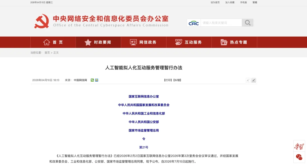 《人工智能拟人化互动服务管理暂行办法》深度解读