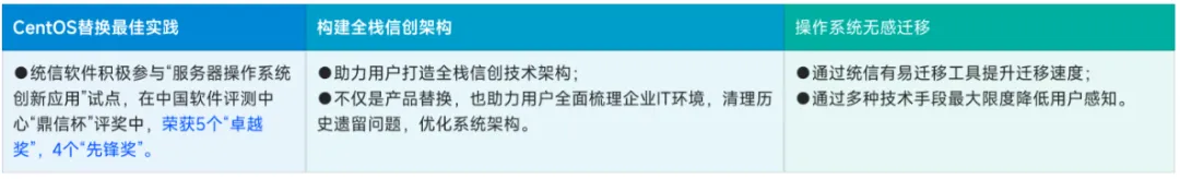 以统信有品为核心的服务器操作系统产品家族,已经在党政、金融、运营商、能源、电力、交通、教育等行业全面展开。同时,统信软件积极参与"服务器操作系统创新应用"试点,在中国软件评测中心的评奖中,荣获5个"卓越奖"、3个"先锋奖"。