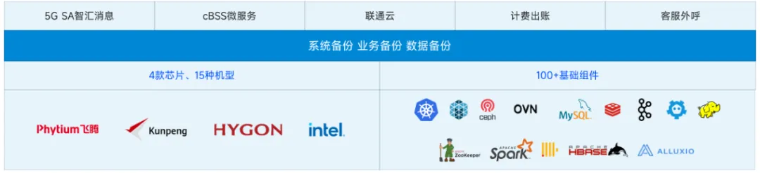 (2)技术组件种类多:涉及100多种技术组件,涵盖云计算、数据库、大数据、中间件、A1、虚拟化以及多种专业化业务组件。