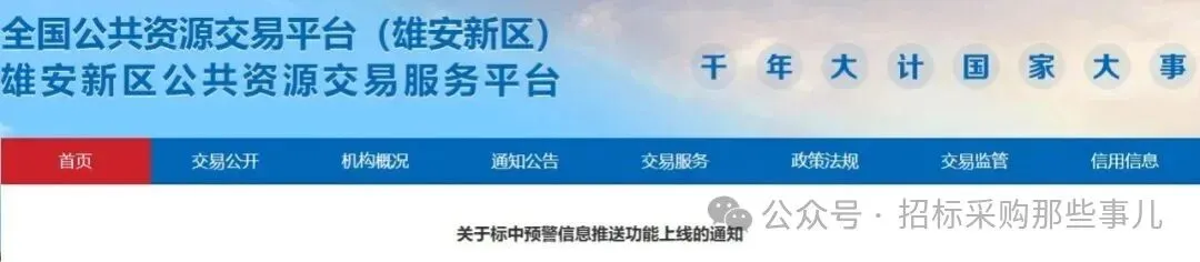 为持续优化新区公共资源交易领域营商环境,巩固拓展招投标“双盲”评审改革成果,全力提升新区公共资源交易监管智能化水平,我局将于2026年3月1日起正式上线试运行“标中预警信息推送”功能。