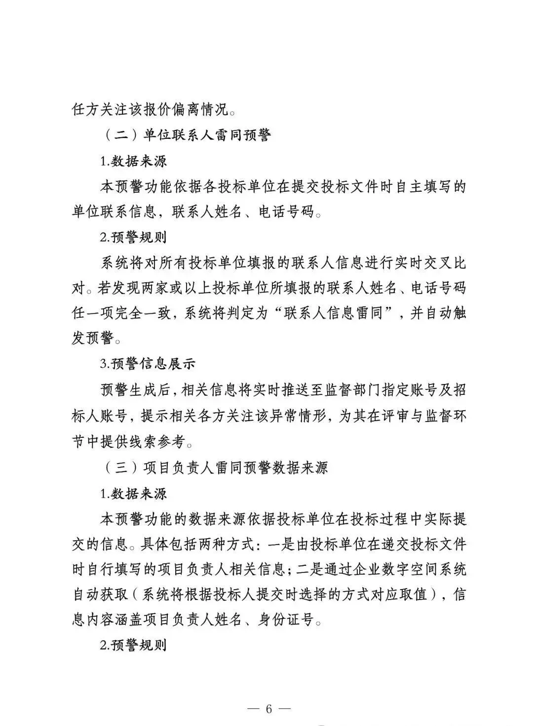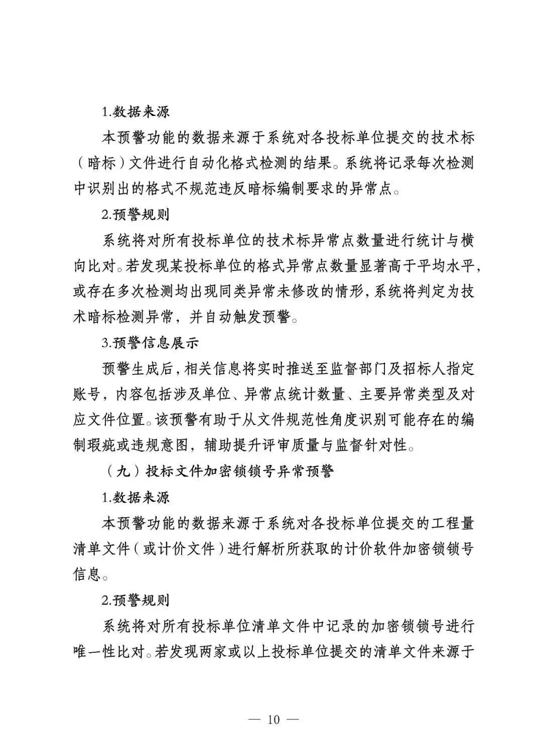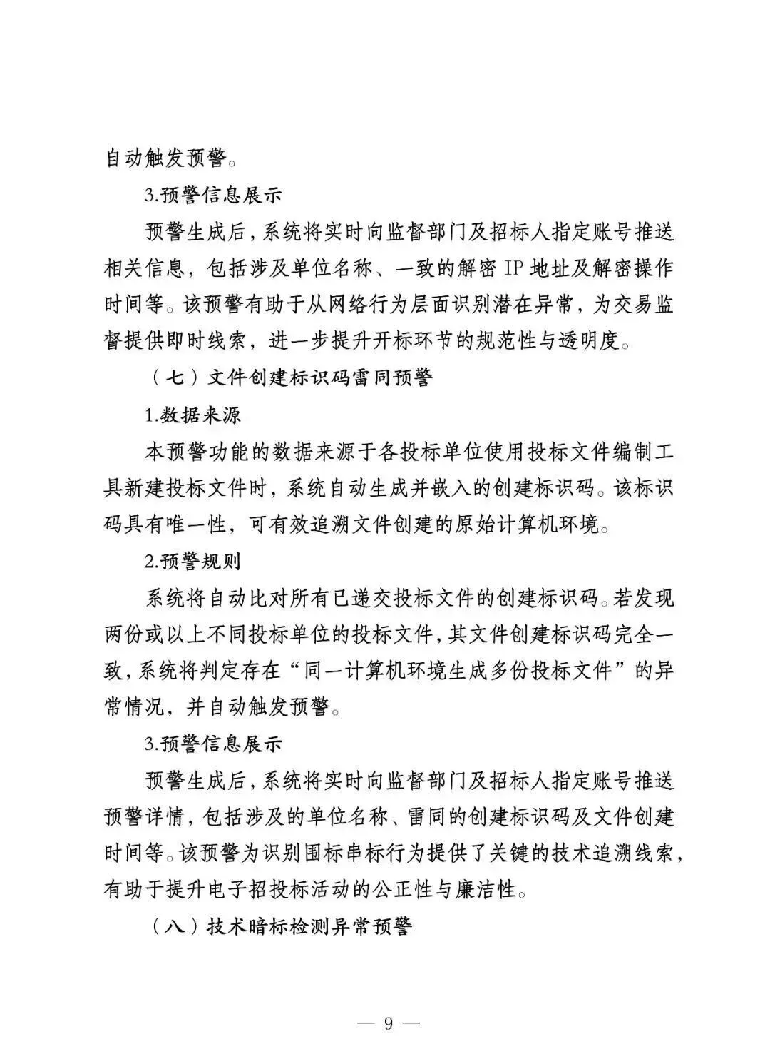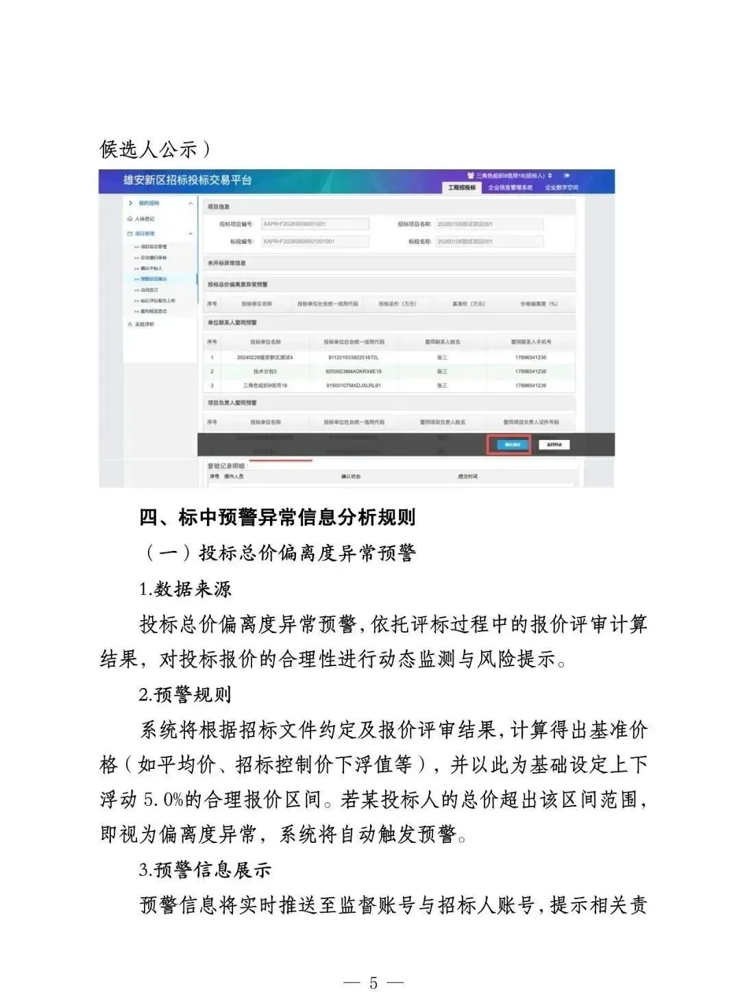 根据河北雄安新区营商环境局发布的《关于标中预警信息推送功能上线的通知》,自2026年3月1日起正式上线试运行“标中预警信息推送”功能。运用“人工智能+监管”技术,通过11项关键预警指标抓围串标。具体如下: