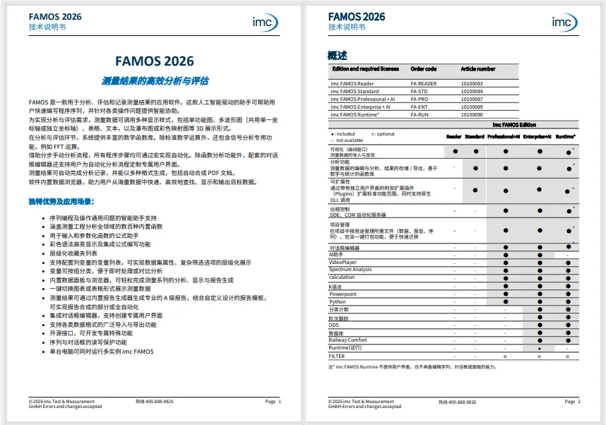 软件定位:FAMOS 2026 是集成AI助手的信号分析与生成报告的专业软件,无需复杂编程即可高效处理海量数据。