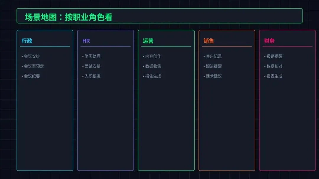 按职业角色看,行政、HR、运营、销售、财务都有大量场景能用起来。