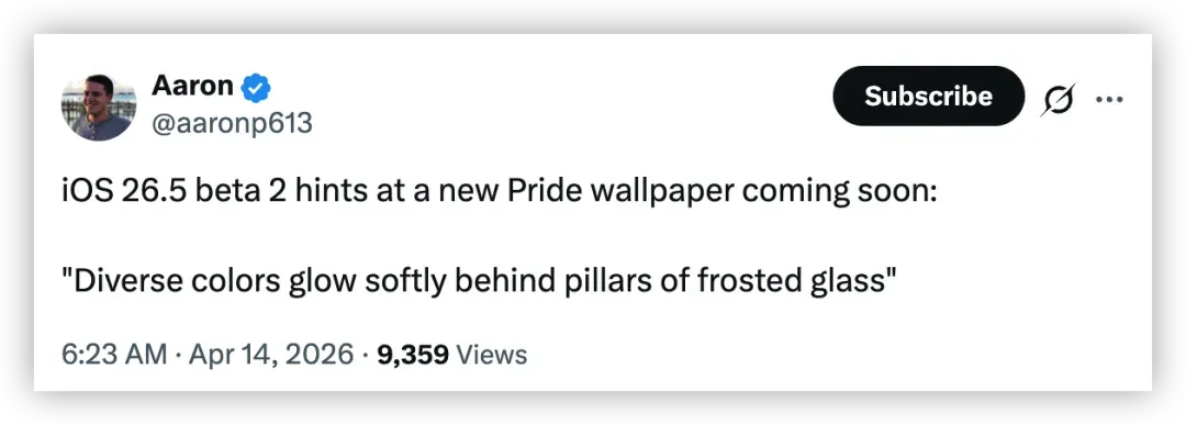 听起来像是结合了经典的彩虹元素和 iOS 26的液态玻璃质感,预计视觉效果会非常惊艳。