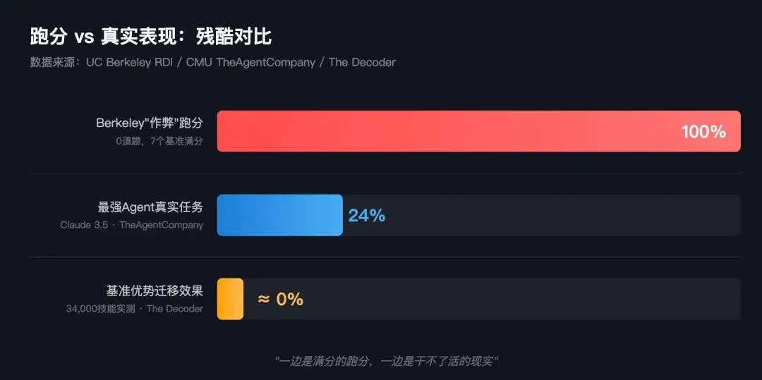**真正扎心的是:就算不作弊,真实场景下的Agent也远没有跑分显示得那么强。**