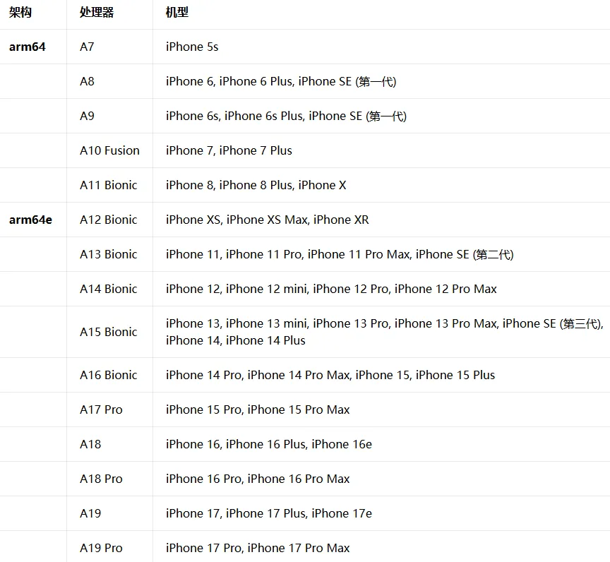 从上图可见,利用 Coruna 和 DarkSword 漏洞,在 arm64e 设备上最高支持 iOS/iPadOS 17.3.1 系统,而 arm64 设备最高支持 iPadOS 18.7.1 系统。