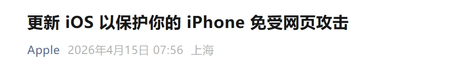 4月15日,苹果官微发文称“如果你的iPhone没有安装最新软件,请更新iOS以保护你的数据安全”。