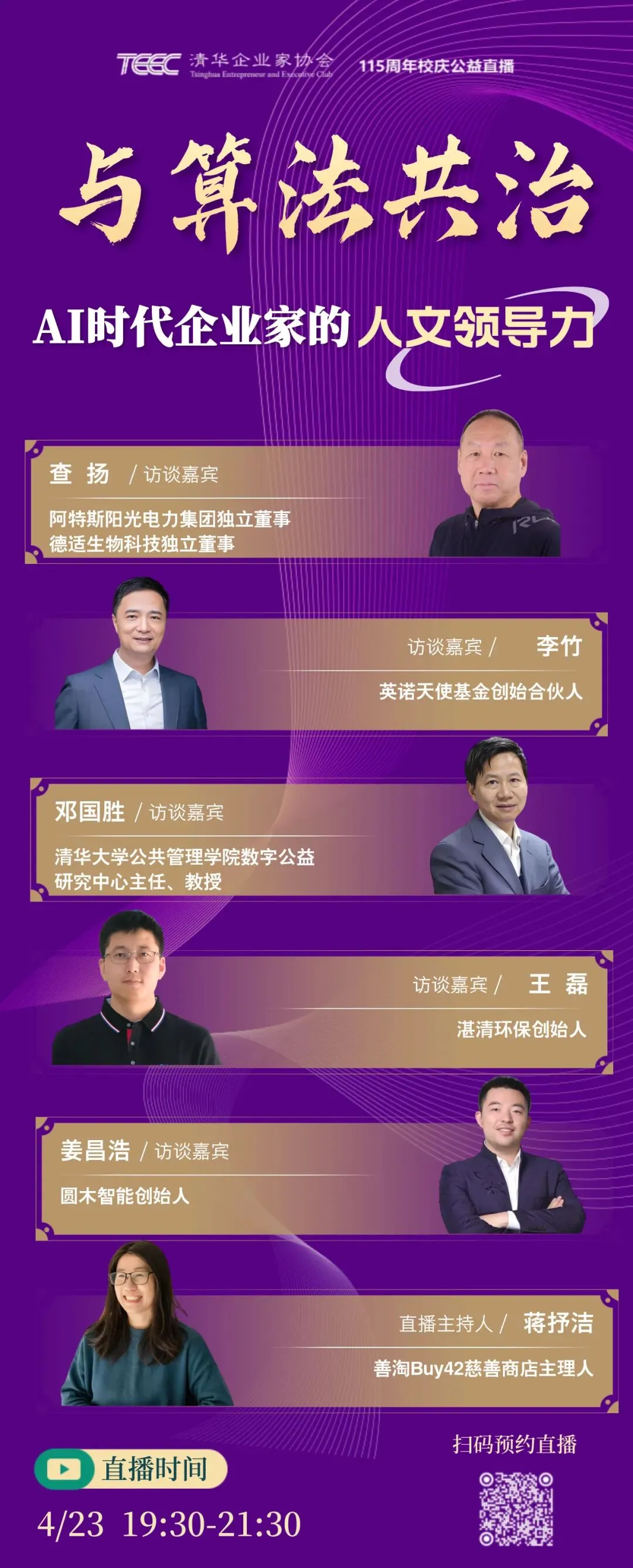 4月23日,清华企业家协会(TEEC)校庆周公益直播特邀五位重磅嘉宾,齐聚云端共探核心命题。