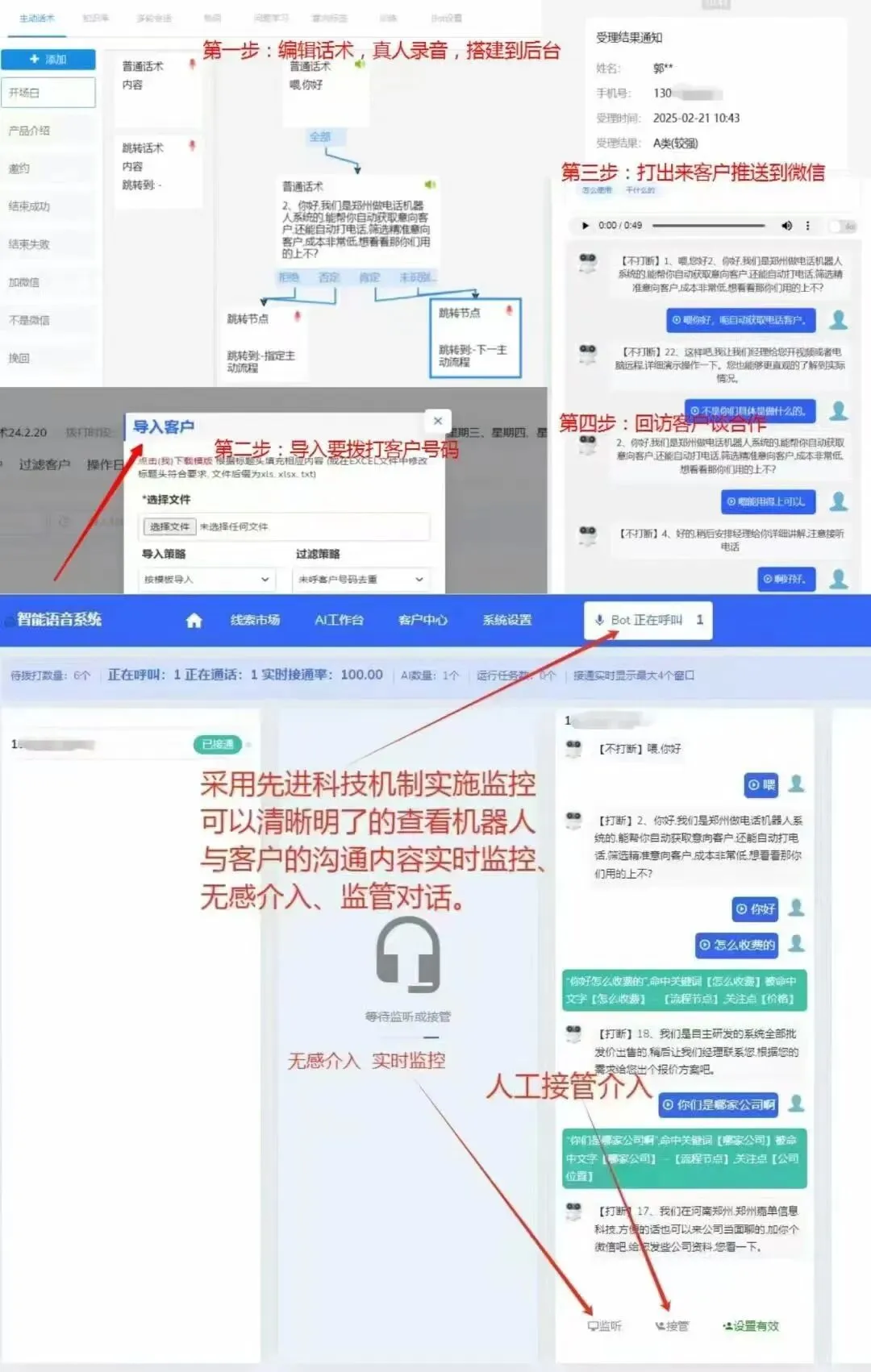 1、真人录制语音。用户只需提供常用的销售话术,专人录制上传,机器人完全代替人员去筛选客户,不会有机械的烦恼。