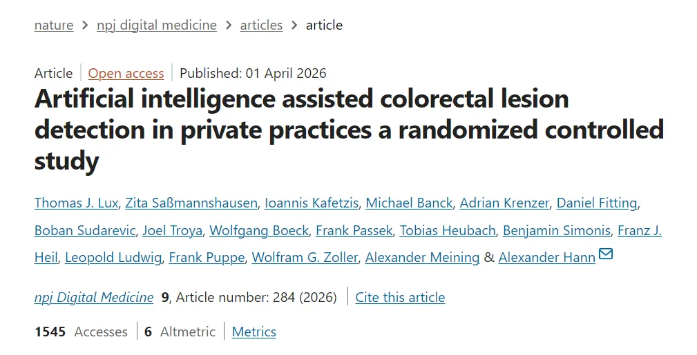 这项研究发表在国际权威医学期刊,是少见的“多中心随机对照试验”——5家医院、900多人参与,数据更可靠。它告诉我们:AI辅助肠镜是个有潜力的技术,但目前在“腺瘤检出率”上,还没比传统肠镜显出优势。未来需要更大规模、更贴近真实就医场景的研究,才能让AI更好地帮我们守护肠道健康。