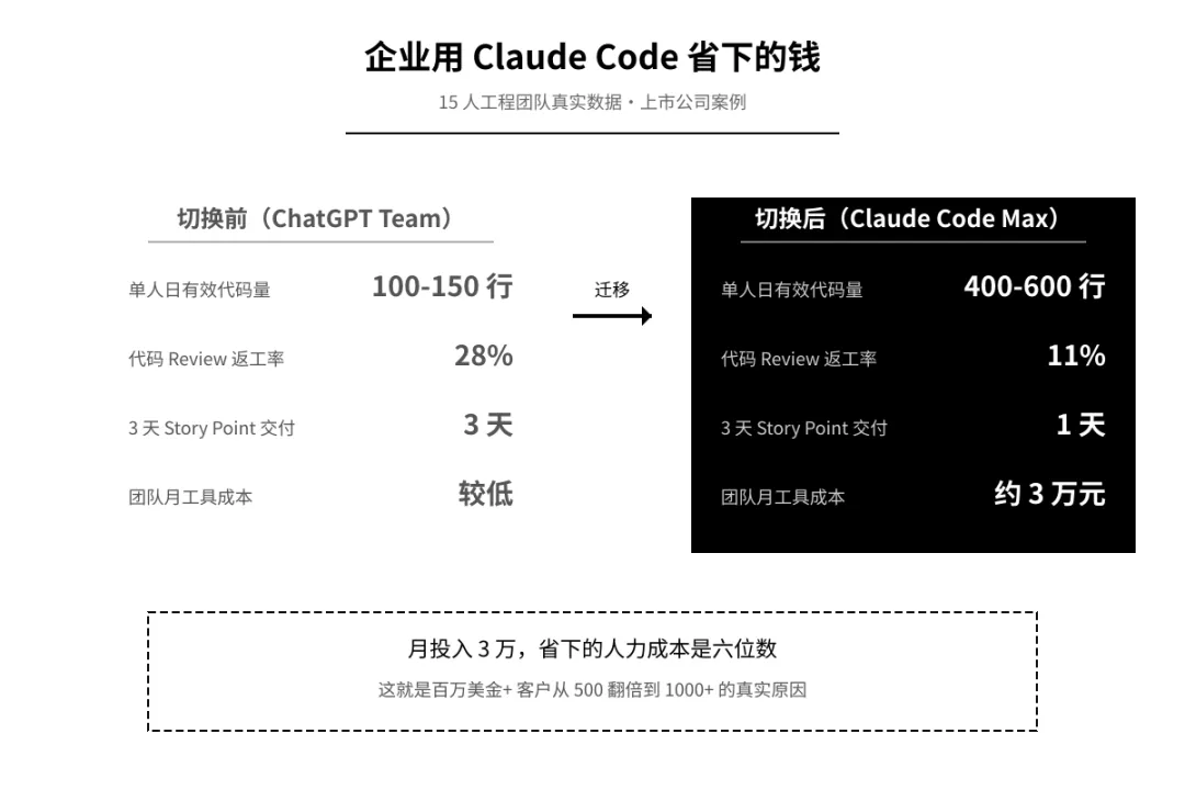 这是我上周跟一个朋友聊到的他们团队——一家上市公司的 15 人工程团队,2026 年 1 月从 ChatGPT Team 切到 Claude Code Max。