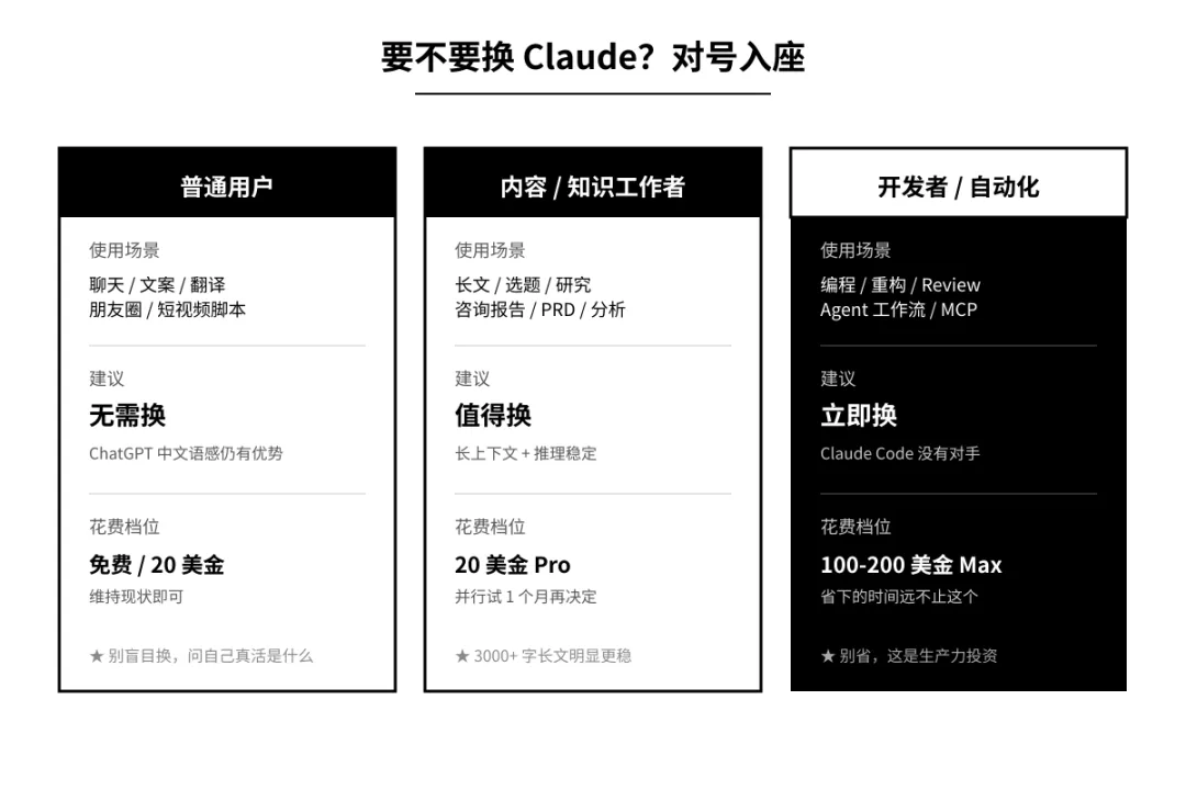 建议:订一个 Claude Pro $20,和你现有 ChatGPT 并行跑一个月,比完再做取舍。