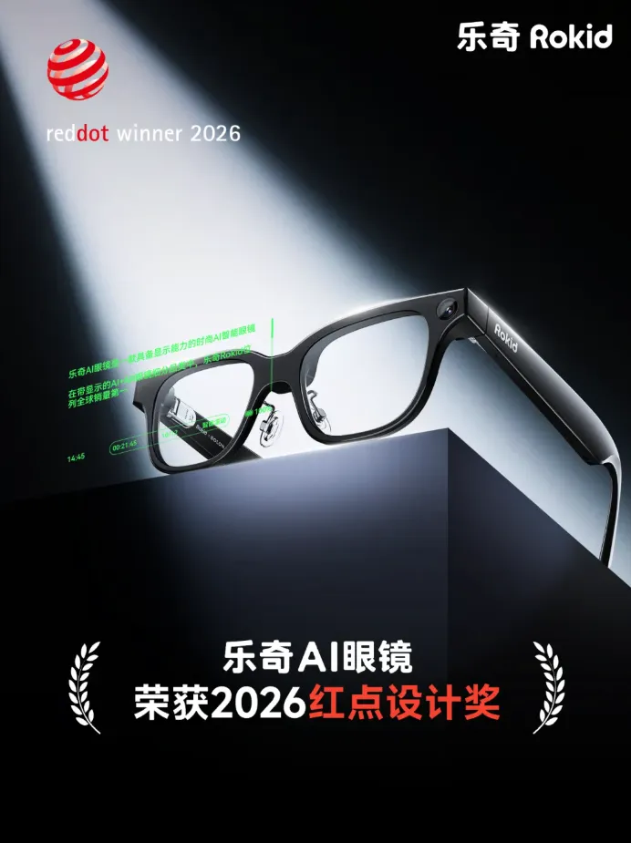 近日,乐奇AI眼镜获得2026年红点设计奖,这一国际权威奖项不仅肯定了产品在创新设计与卓越品质上的表现,也标志着眼镜品类在智能穿戴设计领域的重要突破。