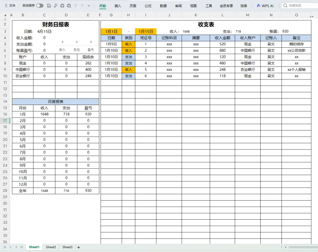 在日常财务管理工作中,每月的收支明细情况是要及时统计的。手工编制每月收支明细表太耗费时间了,如果业务比较多的,计算量还不小。