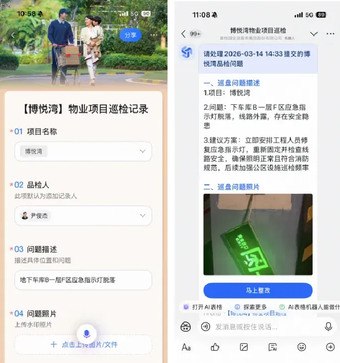 过去物业巡检发现问题(比如楼道灯坏了),标准流程是这样的: