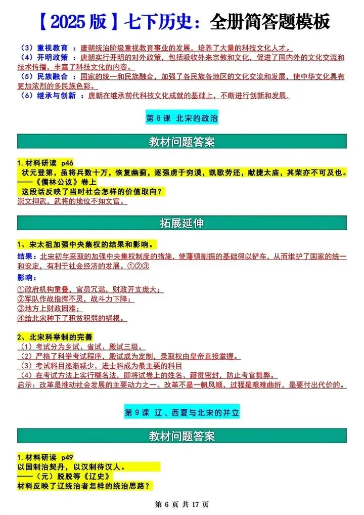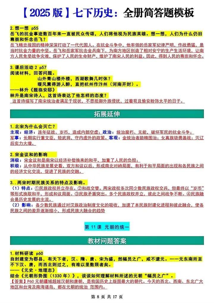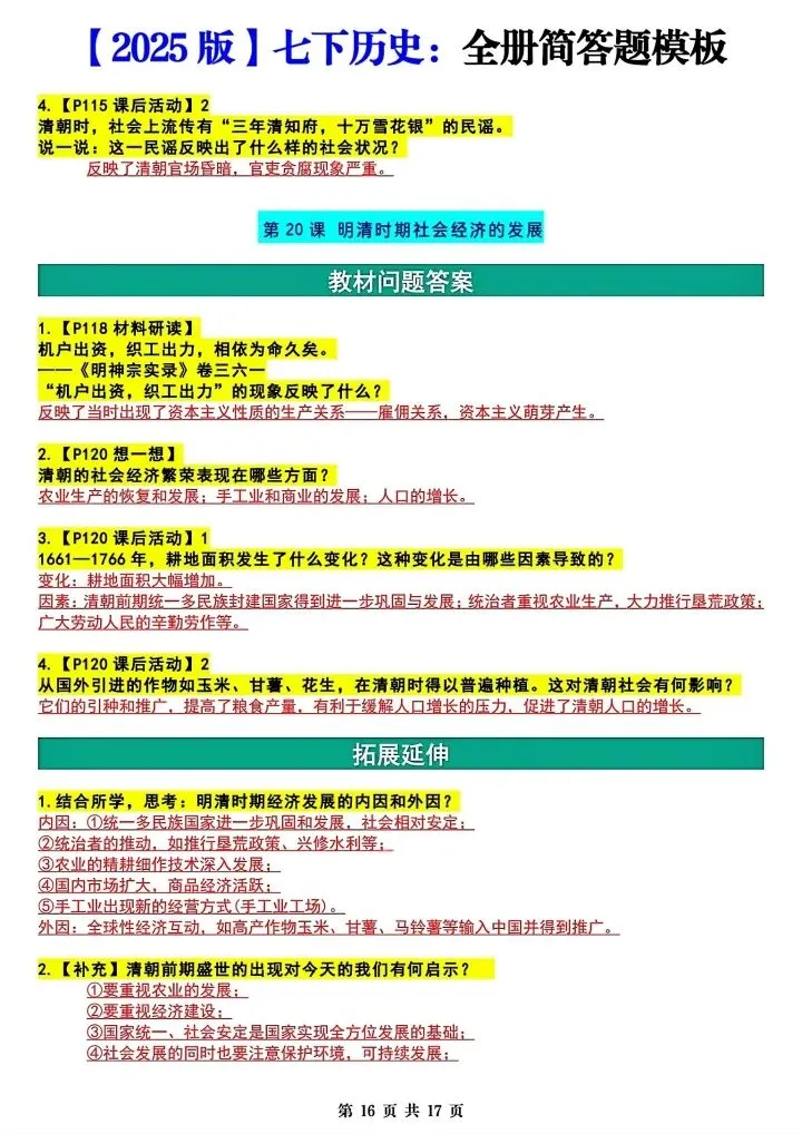 今日分享26新七下历史全册简答题模板(完整电子版可打印)!高清可打印,每日轻量练习,拒绝无效刷题,用系统化资料筑牢学科基础,让假期成为提升的黄金期,开学轻松领跑。