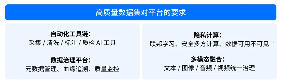 高质量数据集的落地,极其考验底层平台的能力,主要包括: