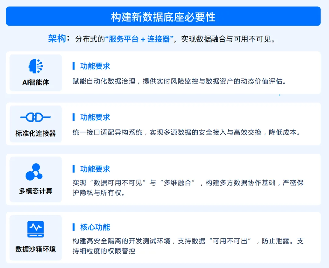 - 数据安全与隐私:高质量数据最终要支撑各种AI应用和大模型,因此平台必须支持跨域联邦学习、数据可用不可见、数据脱敏加密,以及表级、文件级的精细权限管控。