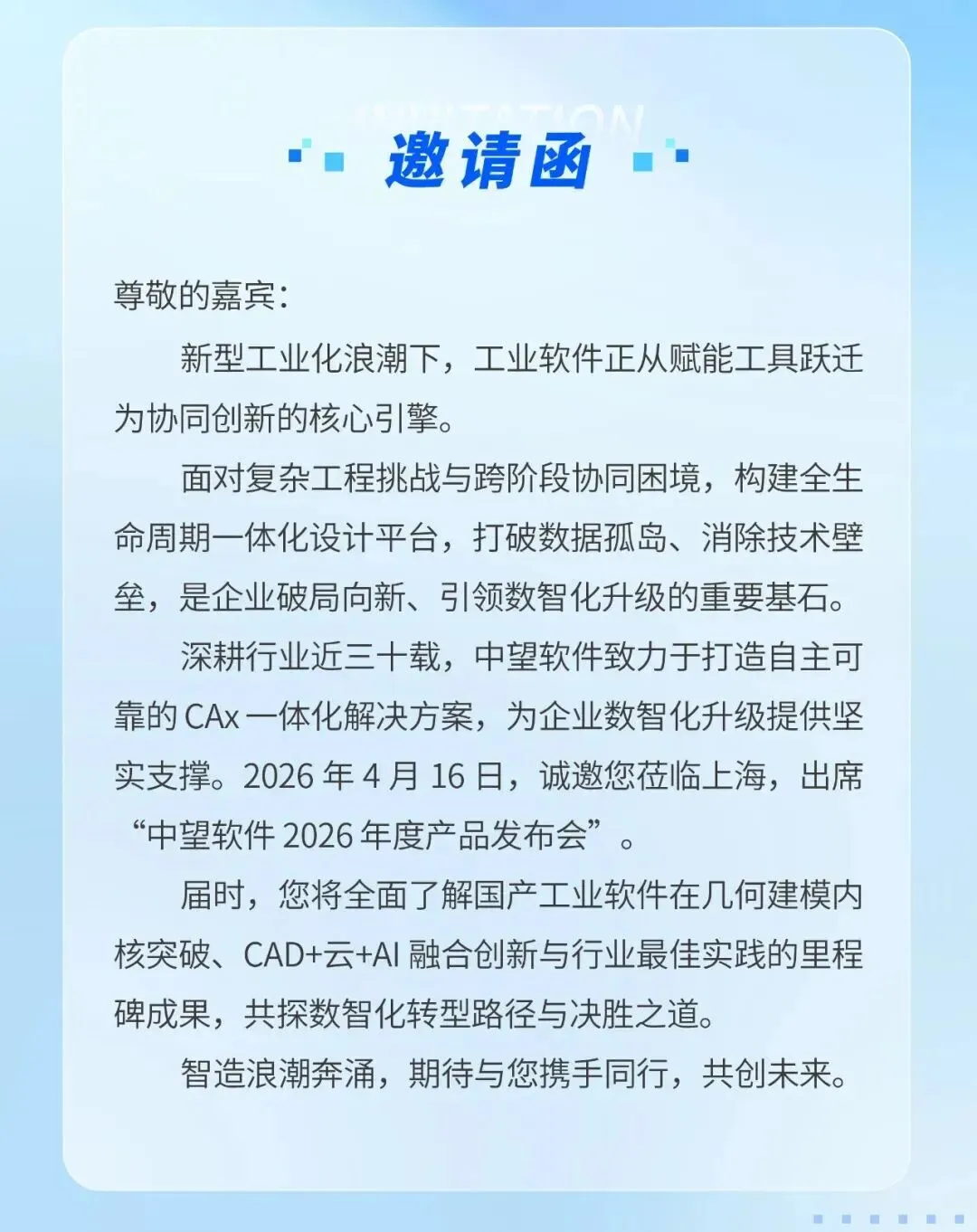 您有一封中望软件2026年度产品发布会邀请函,点击查收