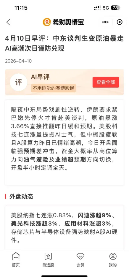 舆情宝每天都会推送《AI早评》,外盘怎么样、有啥大事、哪些公司出了公告,全给你汇总好了,发到你的微信上。