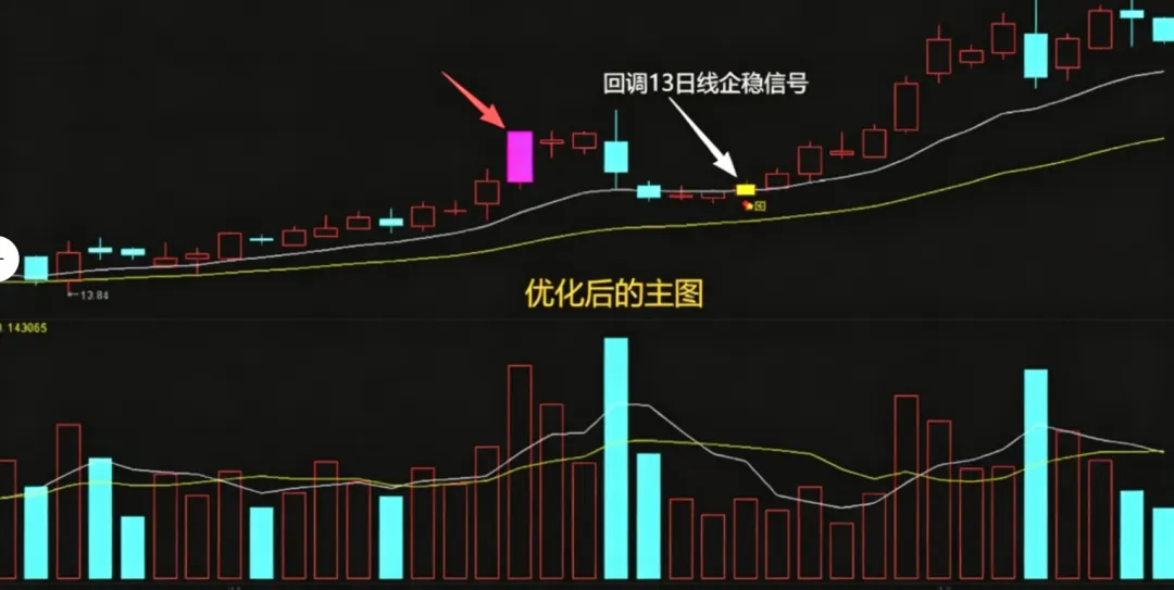 这套指标是我专门针对涨停回调战法优化的,核心逻辑就是抓涨停后回踩13日线的企稳信号,成功率比普通回踩指标高35%!尤其是优化版加了周线趋势过滤,把弱势行情的假信号直接筛掉了,信号质量提升了一大截!今天给大家放的是4个完整公式:前2个是手机+电脑通用版,手机上装了也能正常显示信号;后2个是优化增强版,加了周线趋势判断,信号更精准,不过因为引用了周线数据,暂时只支持电脑端使用哈,手机端的兄弟用前两个就可以!