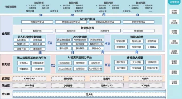 能力层是AI无人机巡检平台的“智慧大脑”,也是平台的核心竞争力所在。基于自研的行业专属多模态AI大模型,打造了覆盖全行业场景的算法矩阵,彻底解决传统巡检“认不准、判不对、漏检多、效率低”的核心痛点;