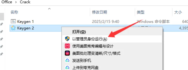 鼠标右击 Keygen2,选择以管理员身份运行。