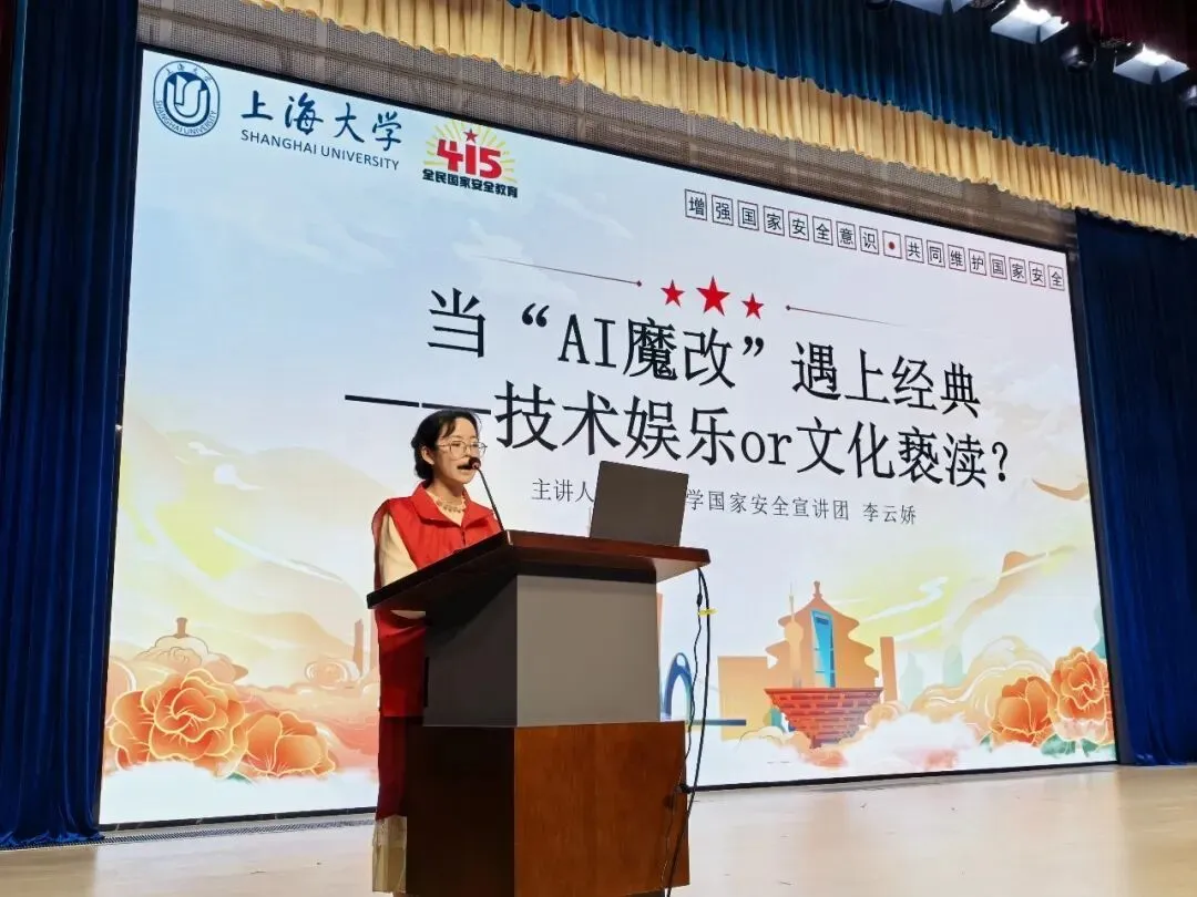 4月14日,在第11个全民国家安全教育日来临之际,上海大学国家安全宣讲团走进我校,为六年级学生带来一场关于“AI魔改”与国家安全的主题讲座。