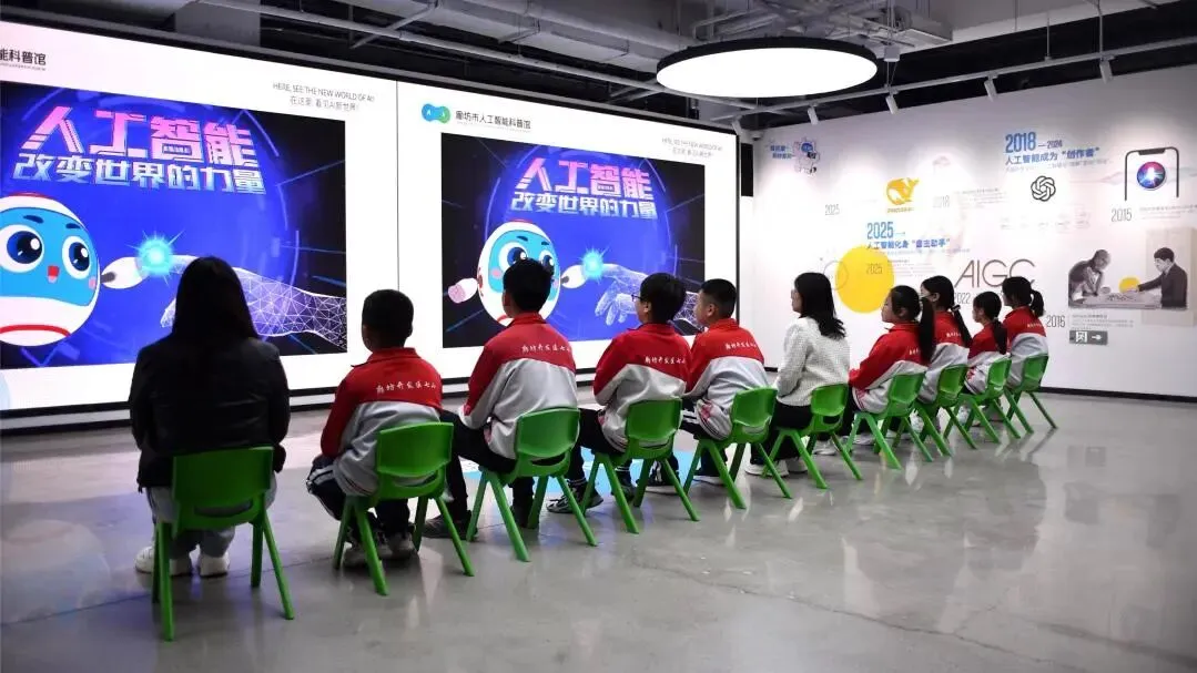 廊坊市人工智能科普馆,作为京津冀地区规模领先的人工智能科普教育综合体,集科普展示、互动体验、研学实践于一体,依托廊坊全国领先的算力产业优势,打造贴合小学及低龄儿童认知特点的科普内容,配备专业讲解团队与系统科普课程,让孩子们在快乐中学习、在体验中成长。