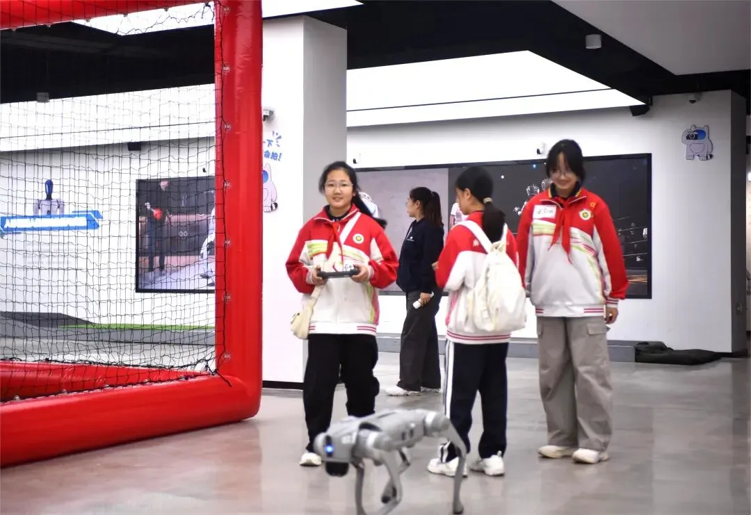 研学现场,少先队员们身着整齐的校服,胸前的红领巾在科技光影的映衬下格外鲜艳。在讲解员的带领下,大家有序参观了科普馆各大展区,开启了全方位的AI探索之旅。