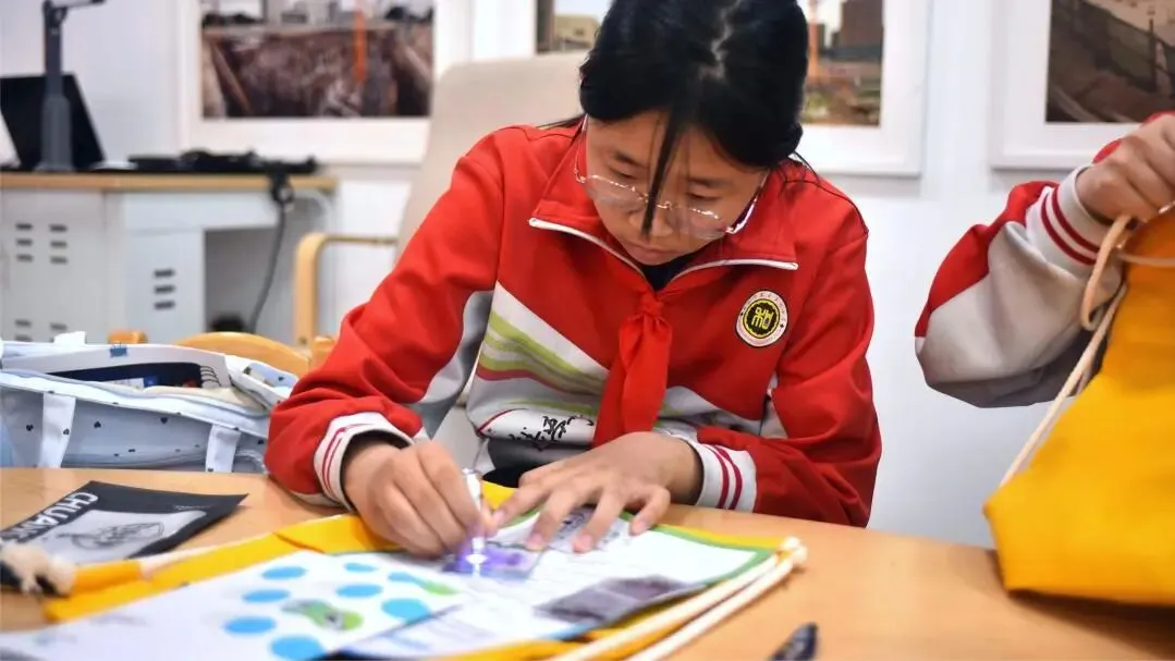 研学尾声,队员们走进张看戏的AI超级工坊,化身“小小光刻工程师”,专注地绘制图案、等待光线曝光,在动手实践中释放想象力,感受AI创作的魅力。