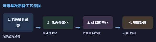 :使用超快激光(皮秒/飞秒激光)在玻璃基板上钻出垂直通孔,这是整个工艺的核心难点; - 孔内金属化